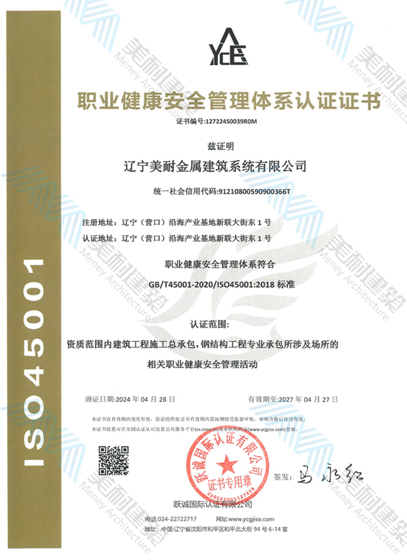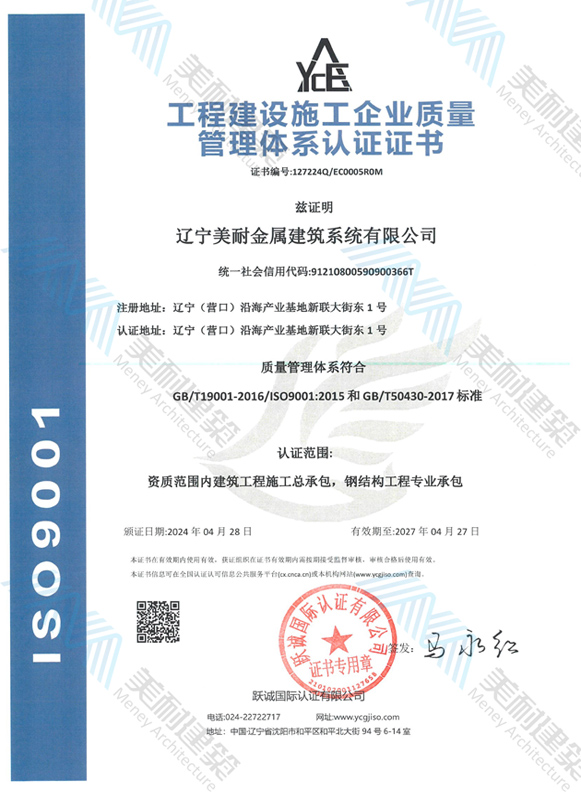 遼寧美耐金屬建筑系統(tǒng)有限公司位于遼寧(營口)沿海產(chǎn)業(yè)基地,專注于預(yù)制金屬建筑系統(tǒng)領(lǐng)域,是一家集工業(yè)建筑設(shè)計(jì)、制作、施工及相關(guān)的技術(shù)咨詢與服務(wù)為一體的綜合性服務(wù)企業(yè)。作為國家鋼結(jié)構(gòu)協(xié)會(huì)會(huì)員、中國建筑金屬結(jié)構(gòu)協(xié)會(huì)會(huì)員單位與國家高新技術(shù)企業(yè),美耐建筑集建筑工程施工總承包、鋼結(jié)構(gòu)工程專業(yè)承包等多種資質(zhì)于一身,并擁有22項(xiàng)鋼結(jié)構(gòu)建筑領(lǐng)域?qū)@?項(xiàng)軟件著作權(quán)。